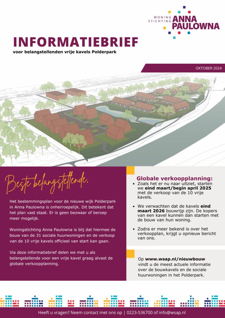 Op 14 oktober hebben we alle belangstellenden voor een Polderpark-kavel een informatiebrief gestuurd.